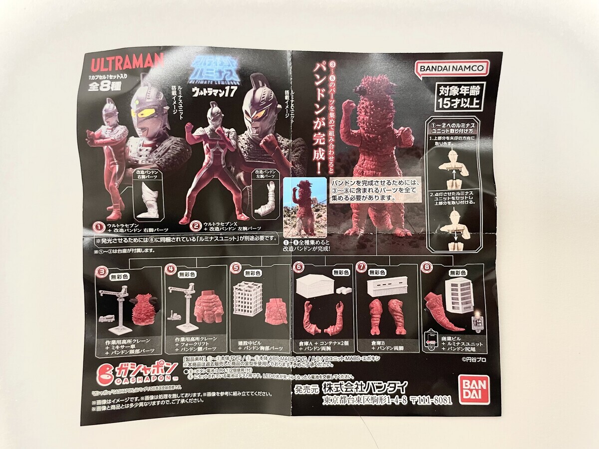 今回はルミナスユニットが少なくなった代わりに、パンドンの肉片パーツが6種類ラインナップされるというなかなかな構成。 セブンXのためにパンドンが出まくることを覚悟してましたが、まさかの2回でセブンとセブンXが当たってしまったので今回は一旦撤退しました。(こんなにすんなりウルトラヒーローをコンプできたのは初期の3弾くらいまでですね)